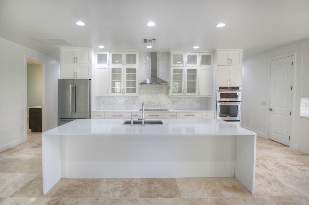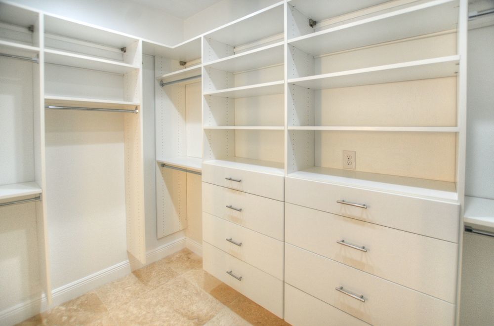 This 2 bedroom, 2 bathroom home comes equipped not only with its own study but its own exercise room as well! Check out the gorgeous white kitchen and its custom backsplash! Each closet also has custom built-ins to fit the needs of the clients.