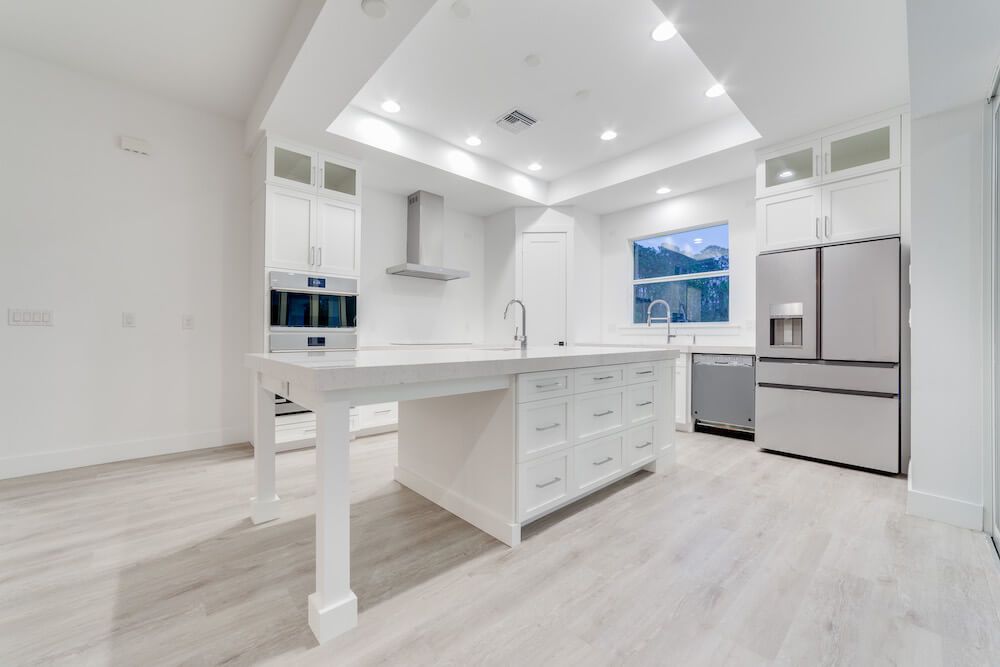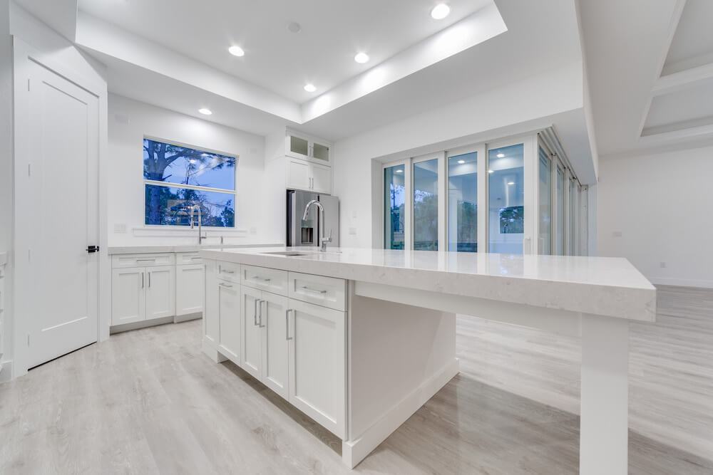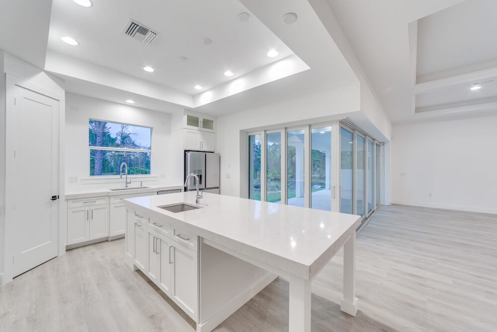 Notable features: Metal roof, Coretec Life-proof floors, impact glass, custom painted wood cabinetry, Quartz counter tops, 3-car oversized garage, custom kitchen design with built-in appliances, custom select shower wall tiles, prep for Outdoor Kitchen, old Florida style with taper columns up front