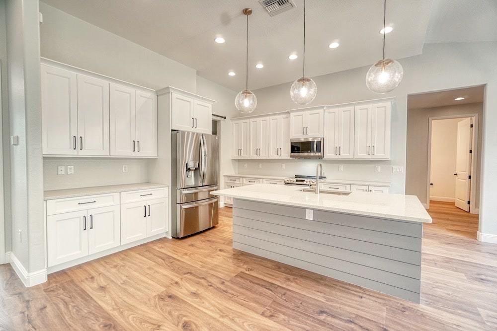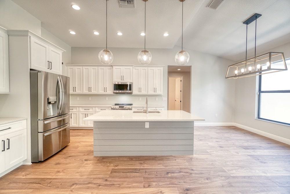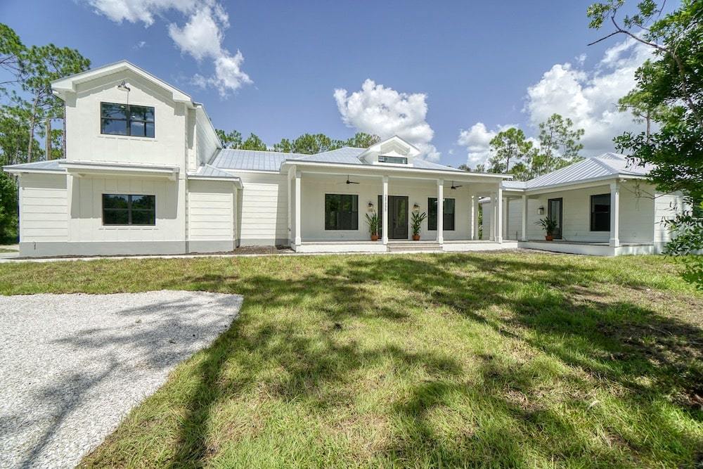 Notable features: Bonus room, In-law “wing” with breezeway, Separate entrances, Impact window and door glass, Metal roof, Custom kitchen with Cambria Quartz tops, Hand selected flooring and custom wall tile, Custom wall textures and ship lap wall finish, Custom barn door applications with pocket barn door in kitchen