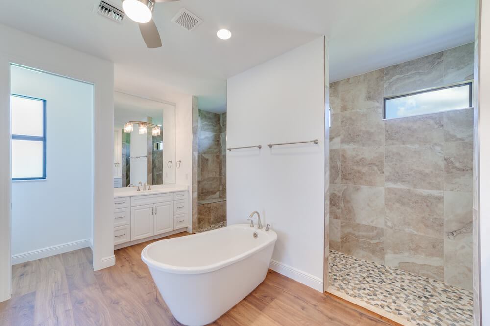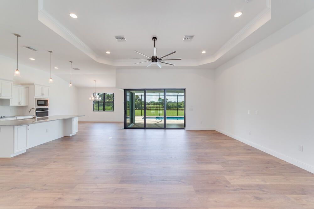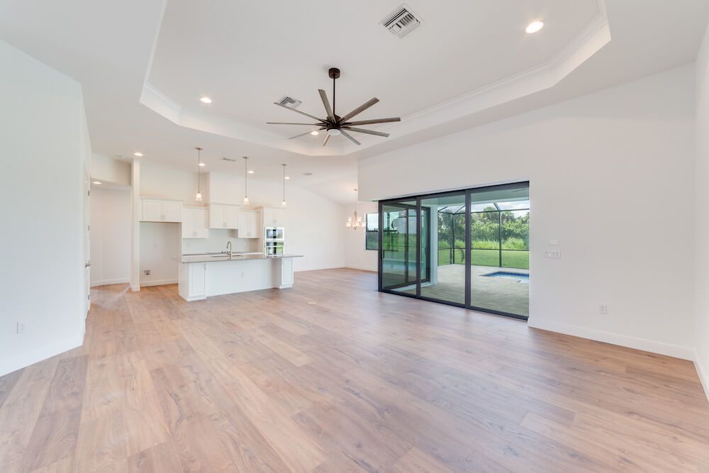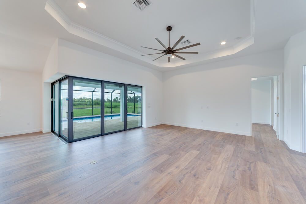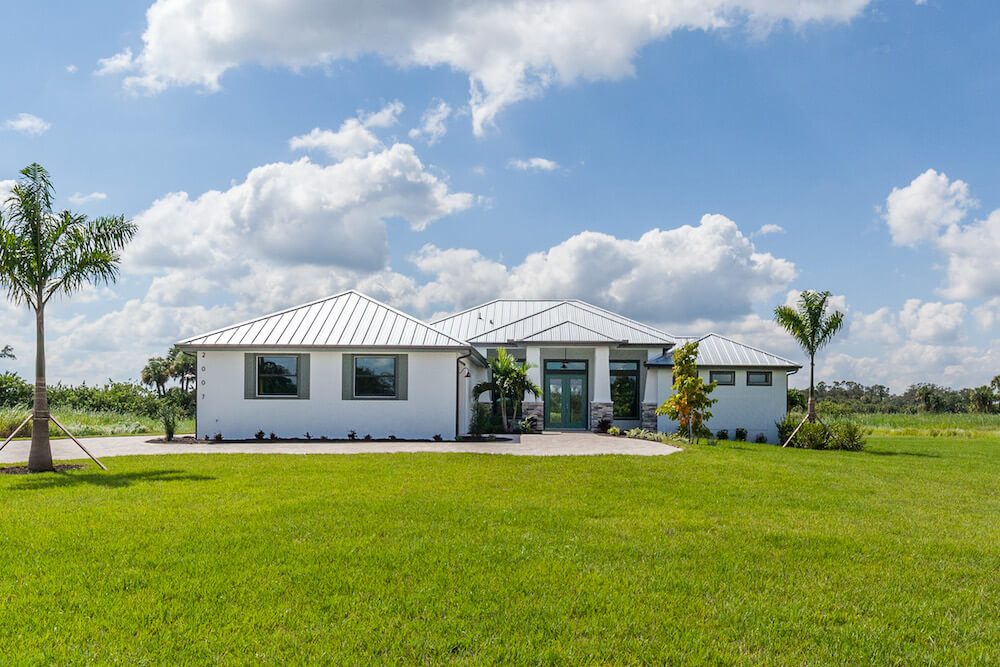 Notable features: 4 bedrooms, Study, Large utility, 3-1/2 baths, Walk-thru shower in master, Pool, Metal roof, Hurricane windows, 90 degree slider, Caloosa Bell elevation with front porch and tapered columns, Paver drive and walkway, Oversized garage, Upgraded 7” plank wood laminate flooring, Custom designed cabinetry with hand selected quartz tops