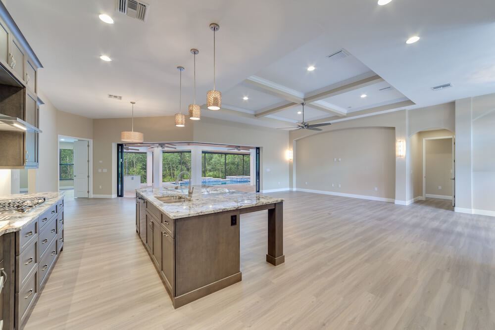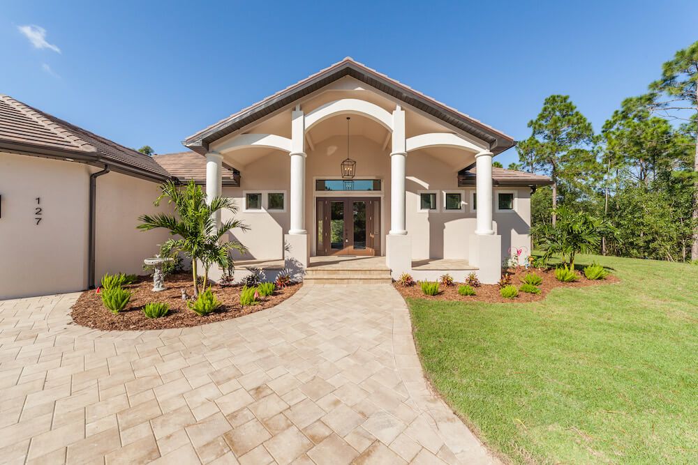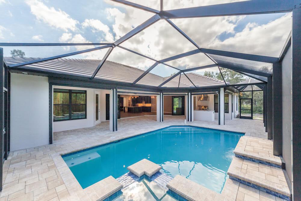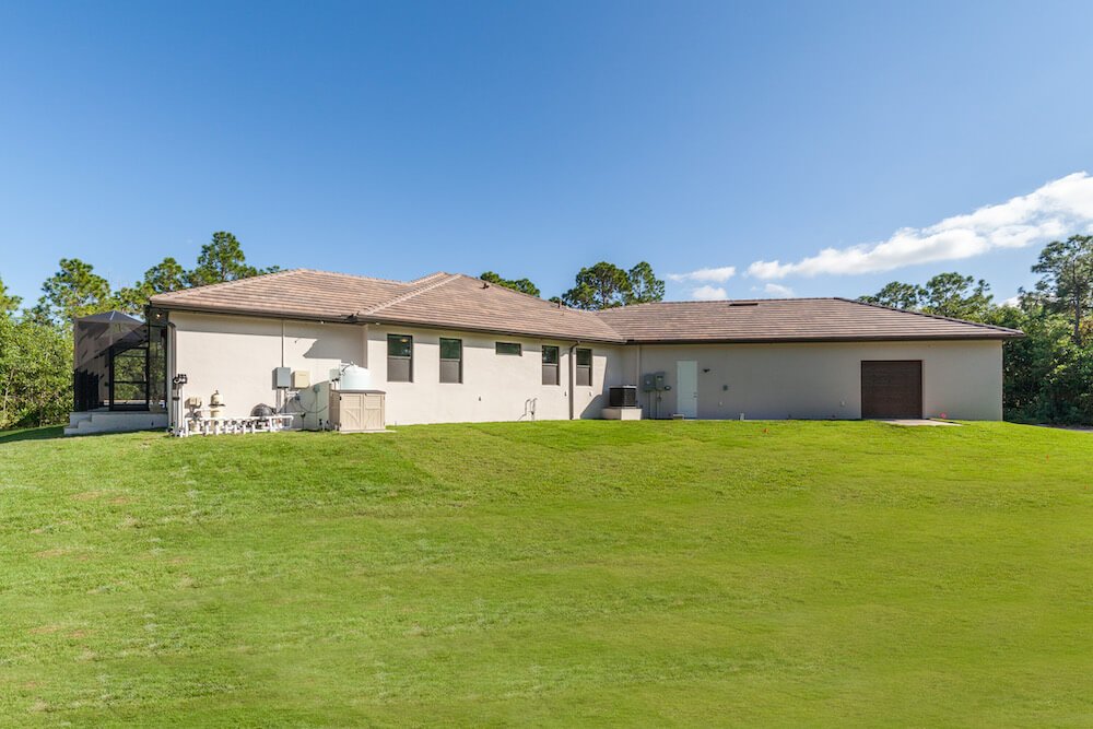 Notable features: A beautiful 10-acre parcel nestled in the northern part of Cape Coral. This home is over 2700 sqft living and boasts a monster garage of nearly 1800sf. Custom features abound in this 3 bedroom, study, 2 bath pool home complete with spa and spacious lanai with outdoor kitchen. The tile roof compliments the custom column and beam construction which make up thus unique front elevation.