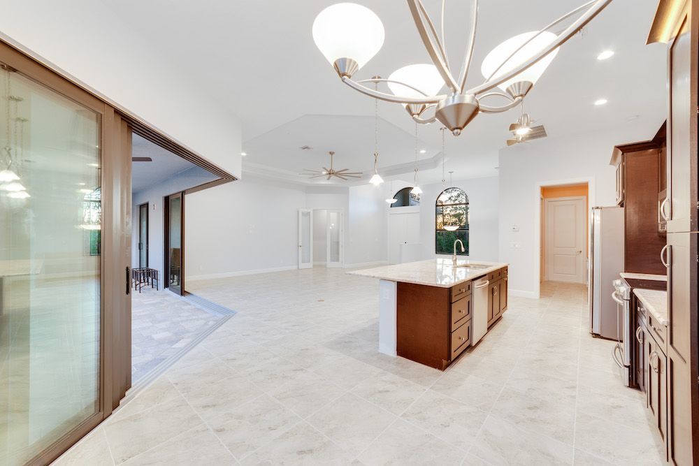 Notable features: Tile roof, impact glass windows featuring 135-degree sliding doors, front porch design, foam accents with stucco, porcelain plank flooring, custom cabinet designs, hand picked granite, age in place with in-law suite design. Saltwater pool, paver driveway, and extra high ceilings in the garage for a car lift.